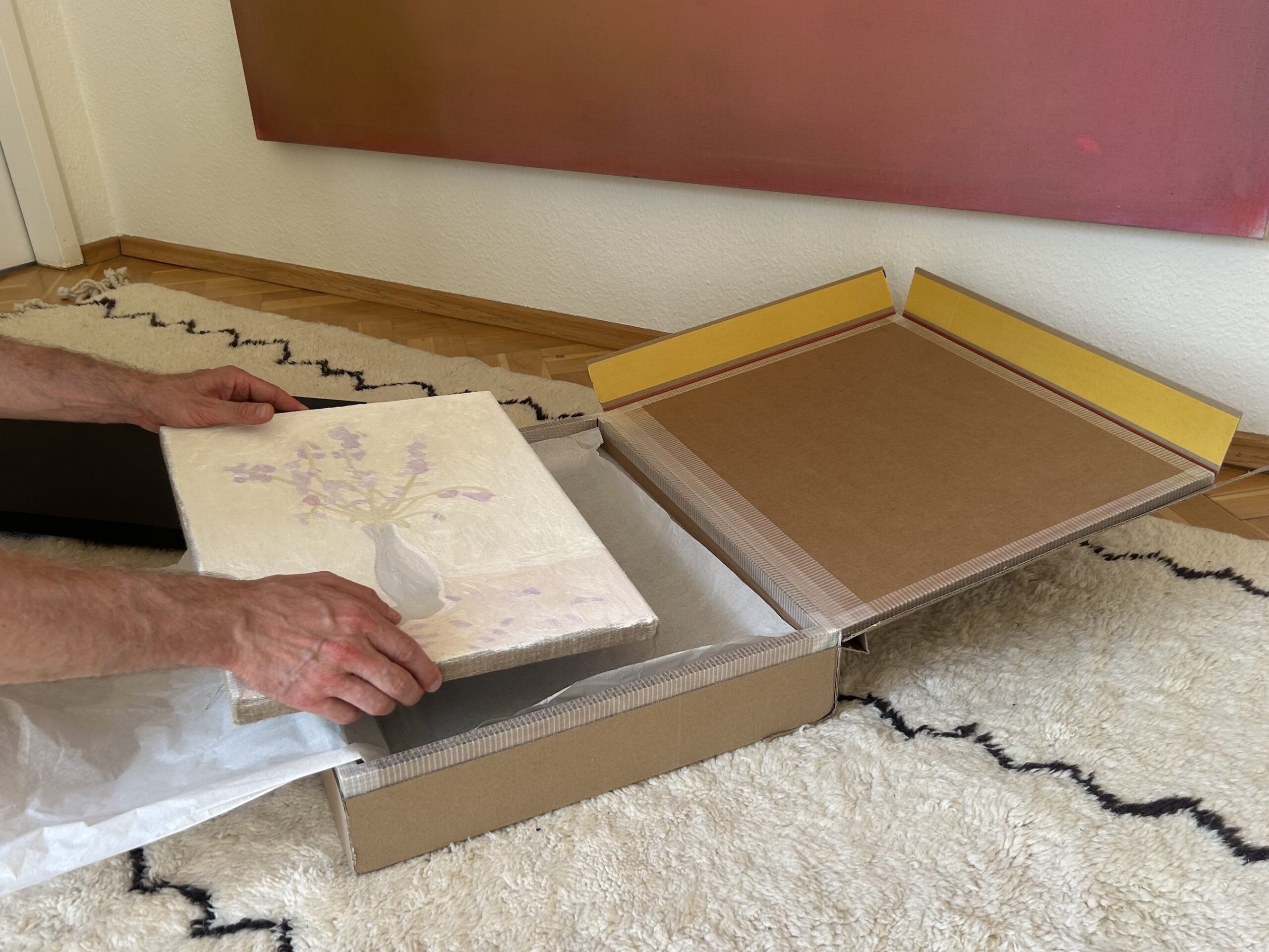Falls Sie ein Gemälde, eine Fotografie oder eine gerahmte Papierarbeit in einer eigenen Holzkiste* verschicken möchten und keine Verpackung von uns benötigen, können Sie über unsere Website ein Angebot nur für den Transport anfordern. Bitte beachten Sie in diesem Fall, dass unsere Versicherung nicht greift und Sie eine separate Transportversicherung abschließen müssen.