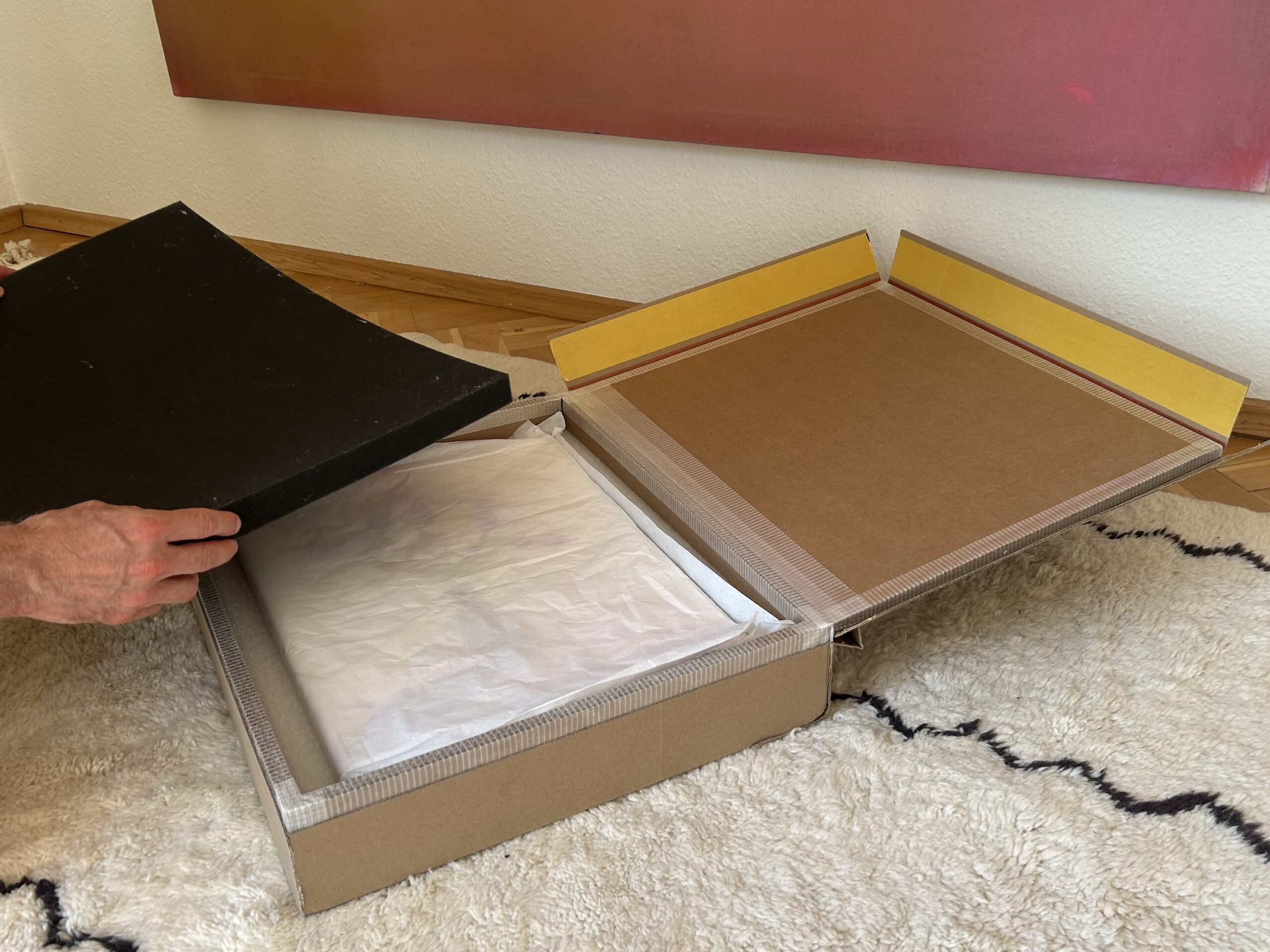 Unsere Verpackung besteht aus einer robusten, dreiwellig verstärkten Kartonage, der ideal für den Versand von empfindlichen Kunstwerken und Objekten ist. Gerade bei Transporten mit Kurierdiensten werden Pakete häufig gestapelt und umgeladen, deshalb ist es wichtig, eine passende und widerstandsfähige Verpackung zu nutzen. Unsere Kartons wurden umfangreich in der Praxis getestet und für solche Transportwege optimiert.