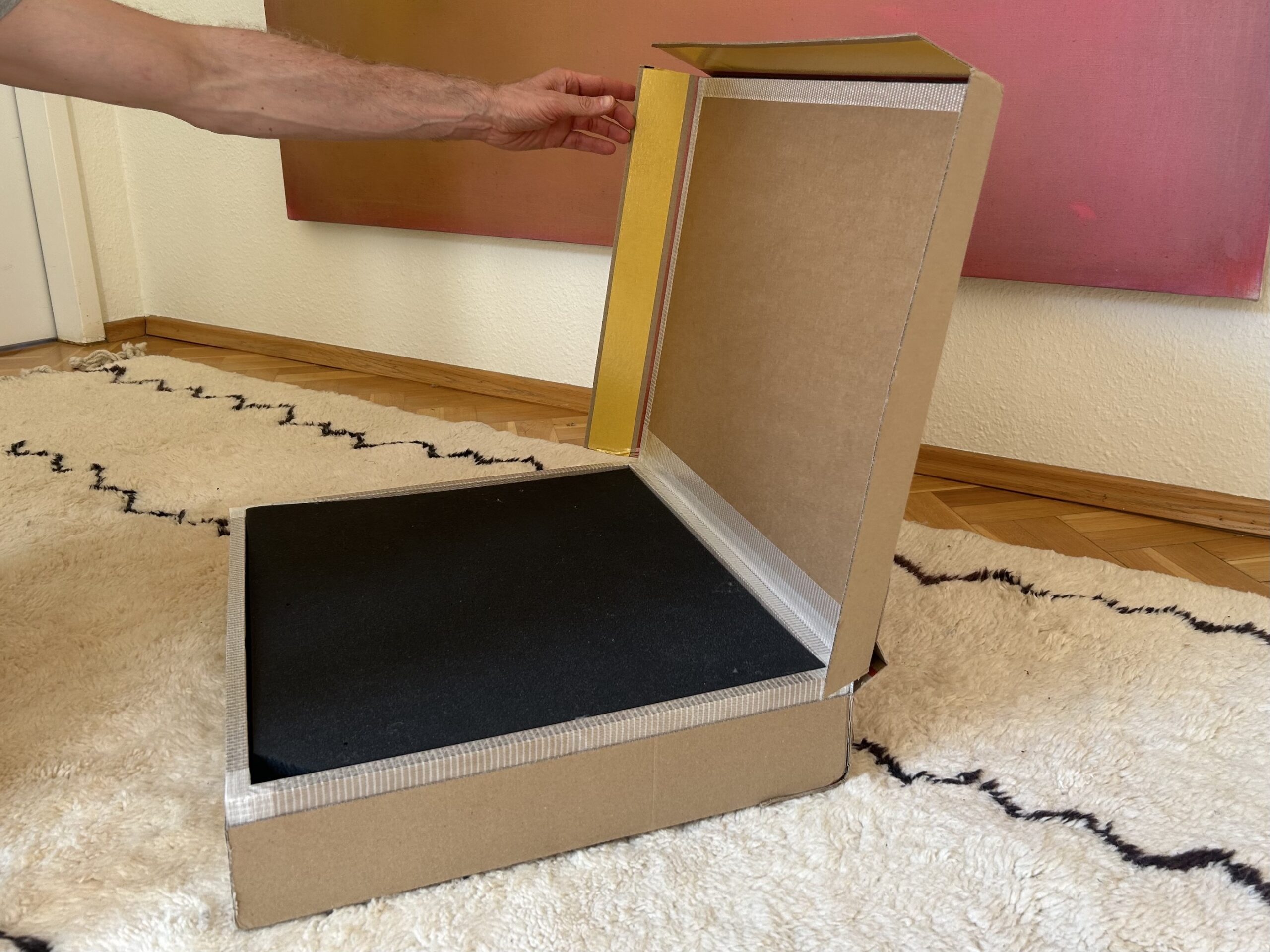 Nuestra caja de envío, especialmente diseñada, está revestida de espuma por todos los lados, protegiendo así su obra de arte contra golpes y vibraciones. Si desea enviar una pintura o un cuadro enmarcado, le proporcionamos junto con la caja un papel especial con el que deberá envolver primero el cuadro para proteger la superficie. Después, solo tiene que colocarlo en el hueco de espuma. Para objetos y esculturas, las cajas están revestidas con almohadillas de aire para amortiguar los impactos. Nuestro embalaje está compuesto por un cartón robusto reforzado de tres capas, ideal para el envío de obras de arte y objetos frágiles. Especialmente en los transportes mediante servicios de mensajería, los paquetes suelen apilarse y trasbordarse, por lo que es importante utilizar un embalaje adecuado y resistente. Nuestras cajas han sido testadas exhaustivamente en la práctica y optimizadas para este tipo de transporte.