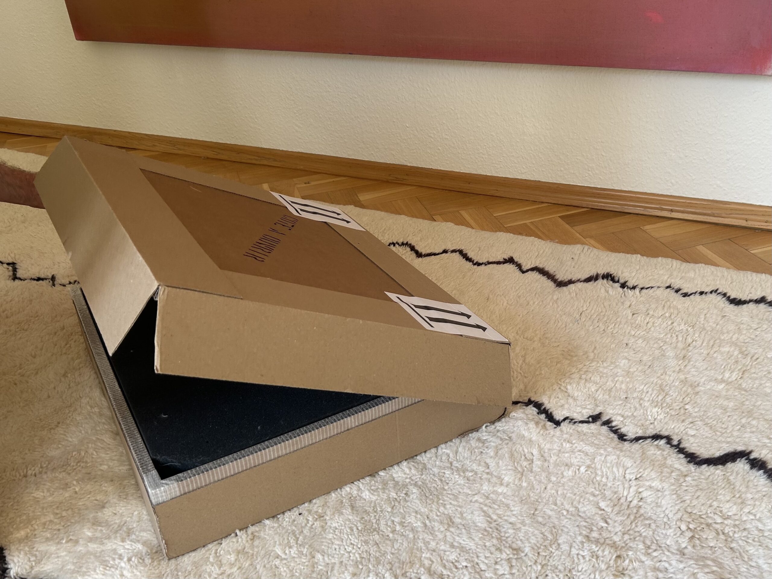 Après avoir confirmé et payé l’offre de transport de Moviiu, nous vous livrons un emballage sur mesure directement à la galerie, à l’atelier ou à votre domicile. Toutes les étiquettes d’expédition nécessaires sont déjà apposées sur le carton, vous n’avez rien à imprimer ou à joindre. Les documents d’exportation éventuellement nécessaires pour l’expédition internationale sont également joints à l’extérieur de l’emballage, afin que l’envoi passe facilement la douane.